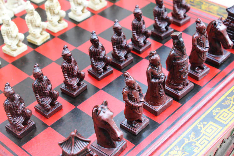 Elevate your chess game with these stunning Terracotta Chess Pieces. Crafted from high-quality terracotta, each piece boasts intricate detailing and a rustic, earthy finish, bringing a timeless charm to your chessboard. Perfect for collectors and enthusiasts alike, these pieces are designed for both display and play. Whether you're challenging a friend or showcasing them as a decorative piece, these unique chess pieces add a touch of history and elegance to any setting.